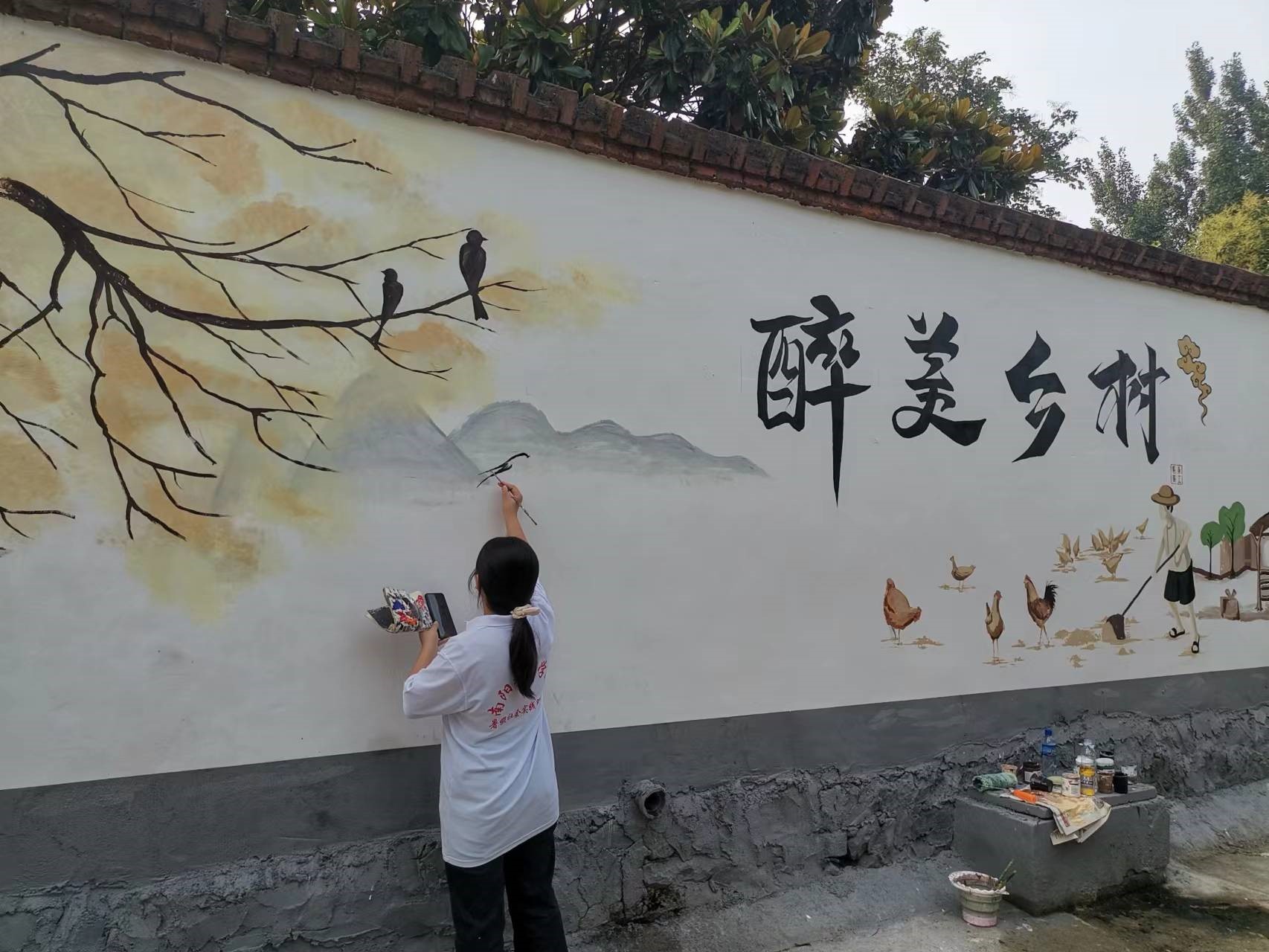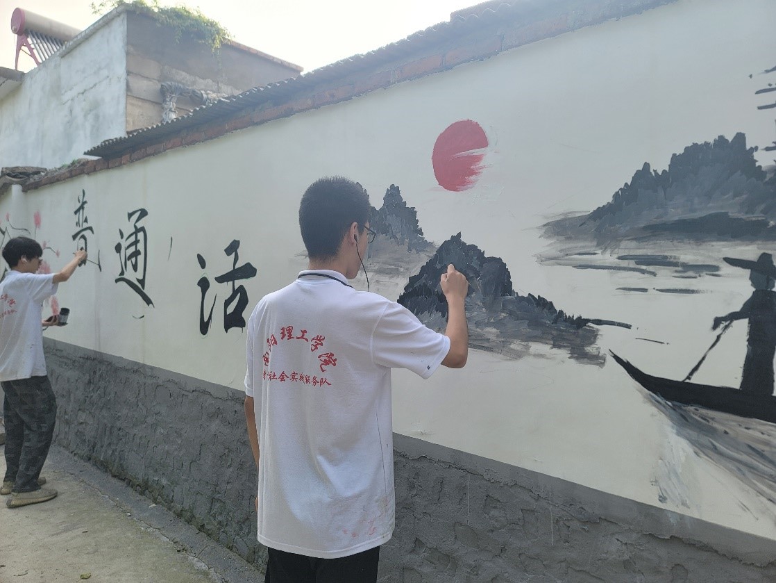 “艺绘九里山,献礼二十大”美丽乡村建设暑期社会实践队于6月21日-6月28日前往南召县太山庙乡九里山村开展暑期社会实践主题艺术墙绘活动。本次墙绘内容紧紧围绕社会主义核心价值观、社会主义新农村建设等题材进行创作,公司学子结合专业特点,调配颜色、描边勾线、绘图上色,用群众喜闻乐见的形式在墙壁上将“乡村振兴”理念图文并茂地呈现出来,以画笔传播社会正能量。
