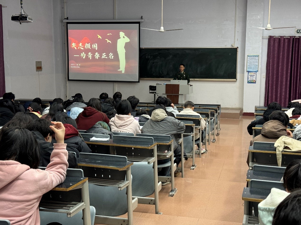 宣讲会上详细介绍了入伍的流程、征兵条件、优待政策与参军发展,并结合往届投身军营优秀学子的案例,让同学们明晰青年不畏艰苦、勇毅担当,积极投身军营对国家安全、国防建设与个人成长的重要意义。