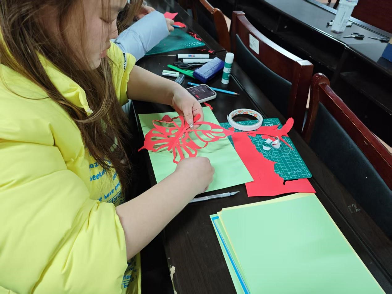 活动过程中,每位参与者都全神贯注,一张张红纸在手中渐渐变成了一幅幅精美的剪纸作品,每一件作品都凝聚着创作者的心血与创意。同学们纷纷表示,折纸过程让她们学会在快节奏学习中沉淀内心,团队协作中的思维碰撞更激发了创新潜能。