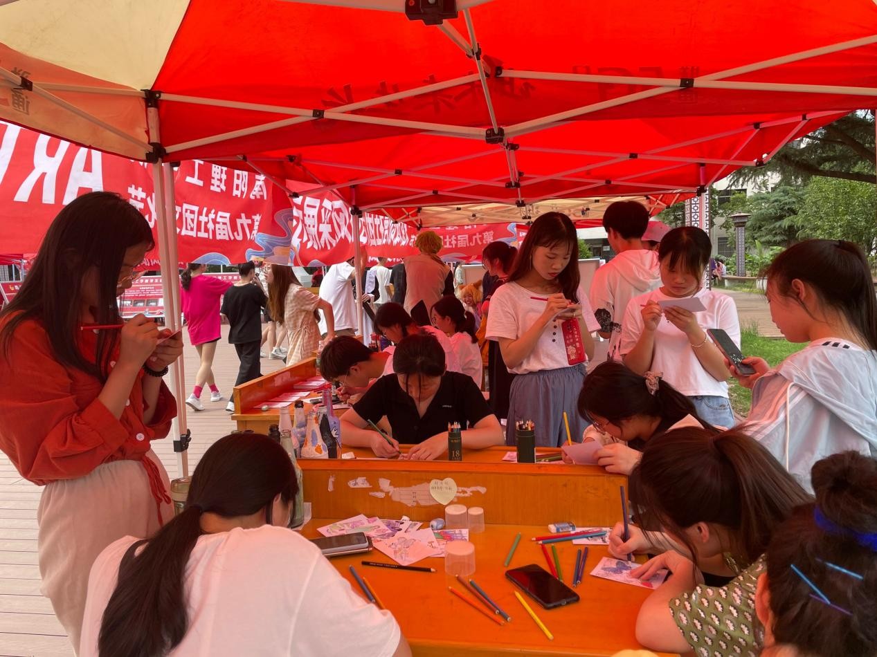 活动过程中,参与者们现场选择自己心仪的线稿明信片进行填色创作,或是跟随角色扮演成员走场为其他社团表演提高气氛,与其他社团即兴合作表演,气氛融洽和谐。