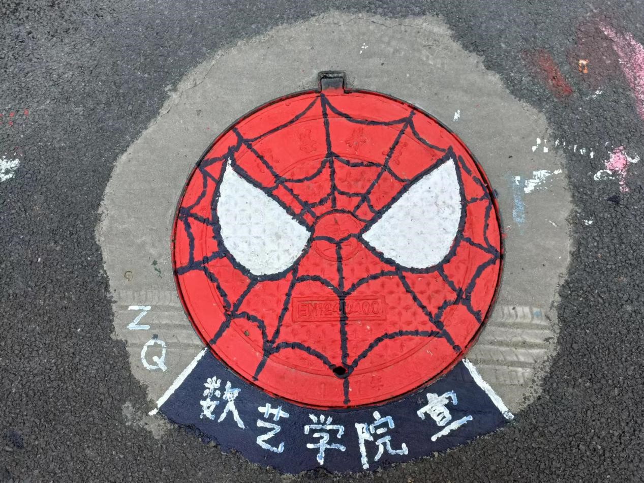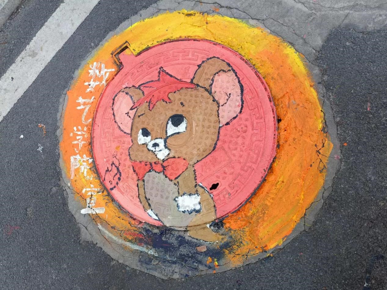 活动开始后,同学们在井盖上充分地发挥了自己的动手能力和绘画能力。用五彩的颜料给井盖换上了“新衣”,装扮了美丽的校园,成为一道靓丽的风景。