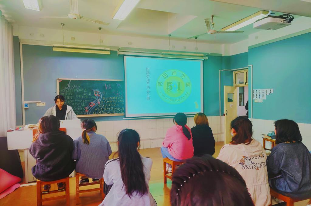 班会开始,各班团支书以ppt、视频的方式观看有关资料。接着,团支书通过讲述劳动案例及劳模故事,宣扬劳模精神等,极大的提高了同学们对劳动重要性的认识,同时勉励大家积极参加志愿服务活动,树立正确的劳动观。最后,以小组为单位分别讨论当代老员工应怎样弘扬劳动精神。